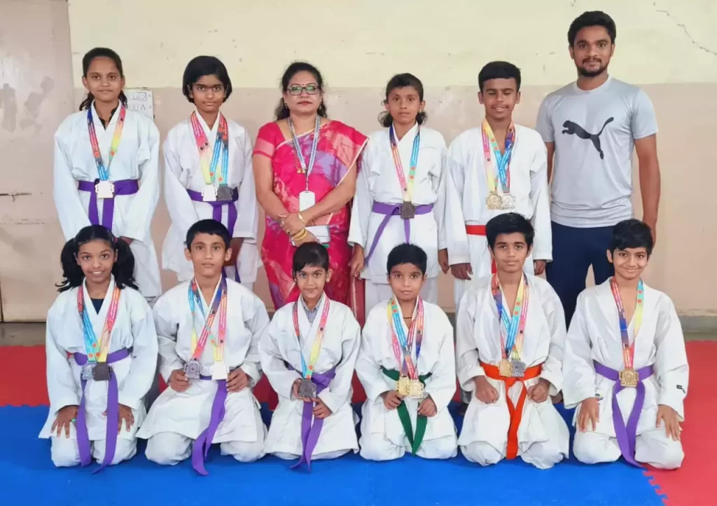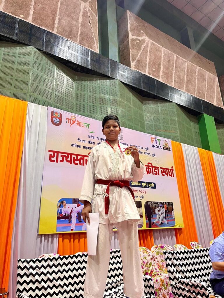 Samruddhi Nakhate bagged Gold medal in girls below 13 age category in kumite event.