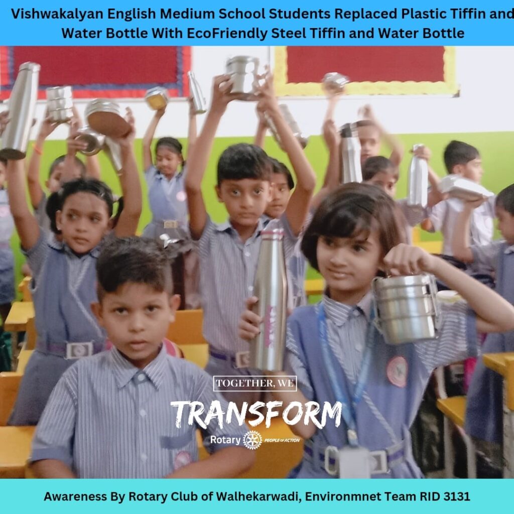In a significant move to combat plastic pollution, Vishwakalyan English Medium School in Chikhali, Pune, has replaced plastic tiffin boxes and water bottles with eco-friendly steel alternatives. This initiative is a part of the Rotary Club of Walhekarwadi's mission to promote environmental stewardship and sustainable practices.