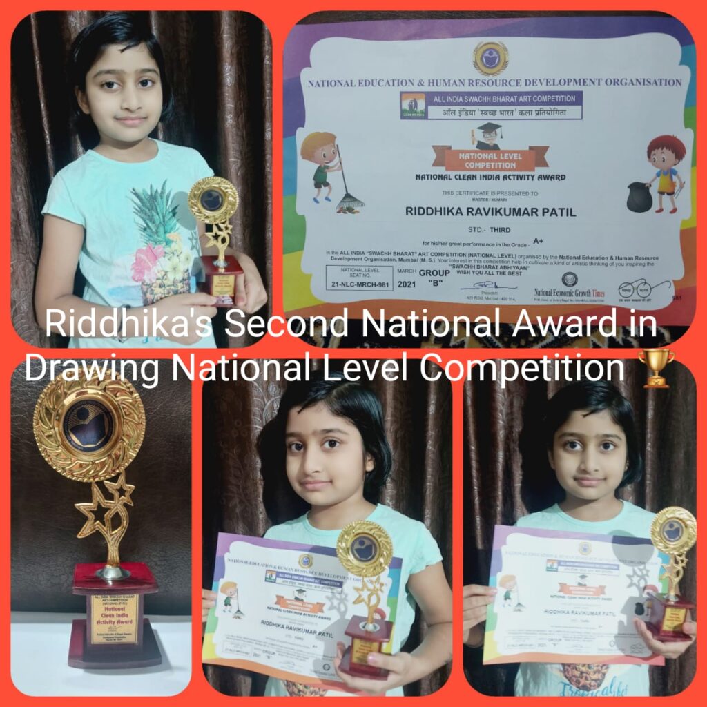 Riddhika's Second National Award in Drawing National Level Competition