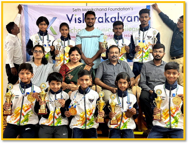 Traditional Shotokan and Sports Karate Organisation had organized State level E- Kata and Virtual Kumite Techniques Championship from 5th to 13th July, where 350+ participants took part from 9 different districts all over Maharashtra. 12 students from our school took part at this virtual tournament and bagged 10 Gold, 5 Silver and 7 bronze medals with total count of 22 medals. Vishwa Sports Academy of Vishwakalyan English School bagged 1st place general Championship trophy at this tournament. Thank you ma'am for your constant support and guidance